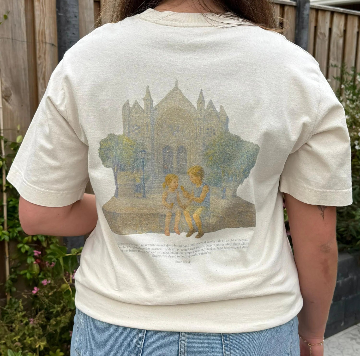 This is an example of a Custom AR-Tee: a unique design where a classical artwork is reimagined into a contemporary print. In this case a personal reference is blended with our signature style, the fusion of art, streetwear and storytelling. The result is a wearable piece of art that not only makes a statement but also tells a story.